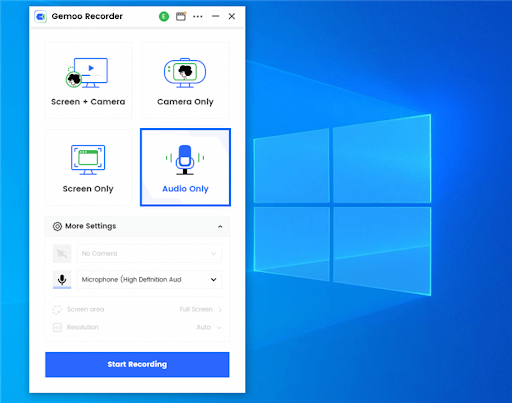 Step 1. Download Gemoo Recorder for free and launch it on your computer. Then, select the Audio Only option from the options displayed on the screen.